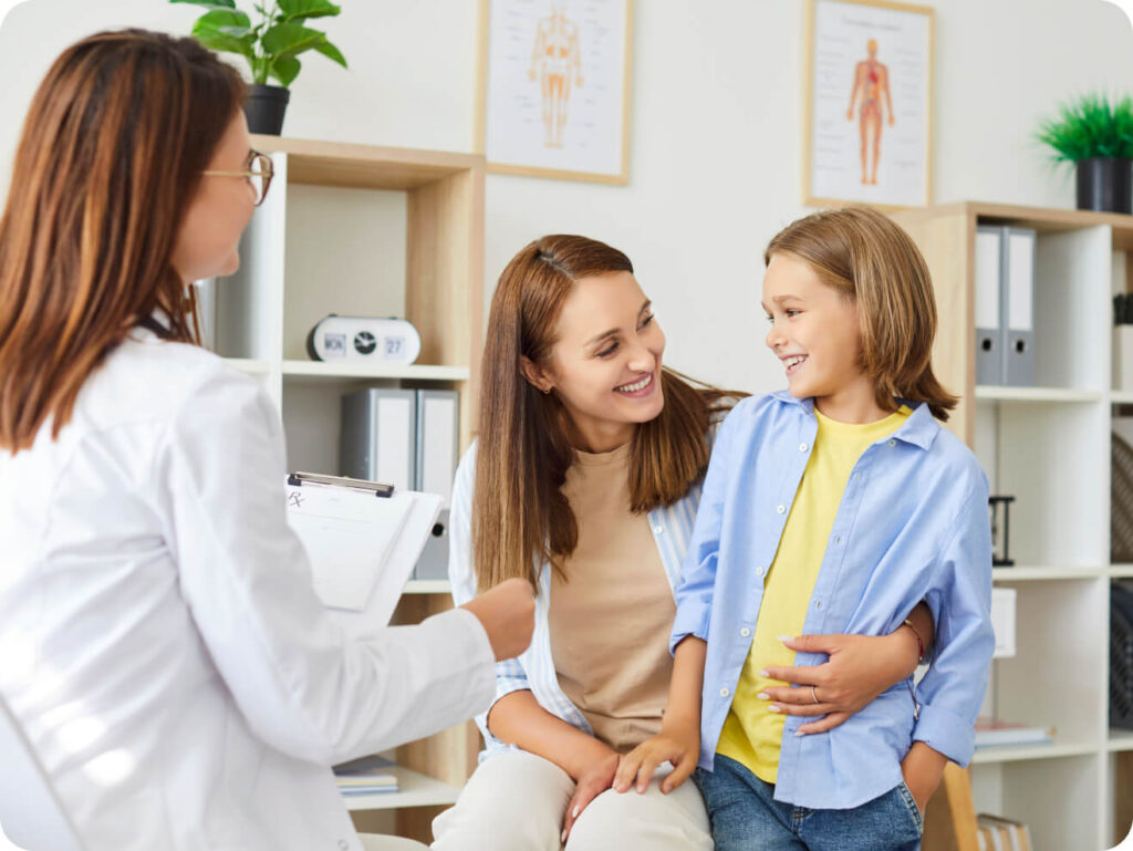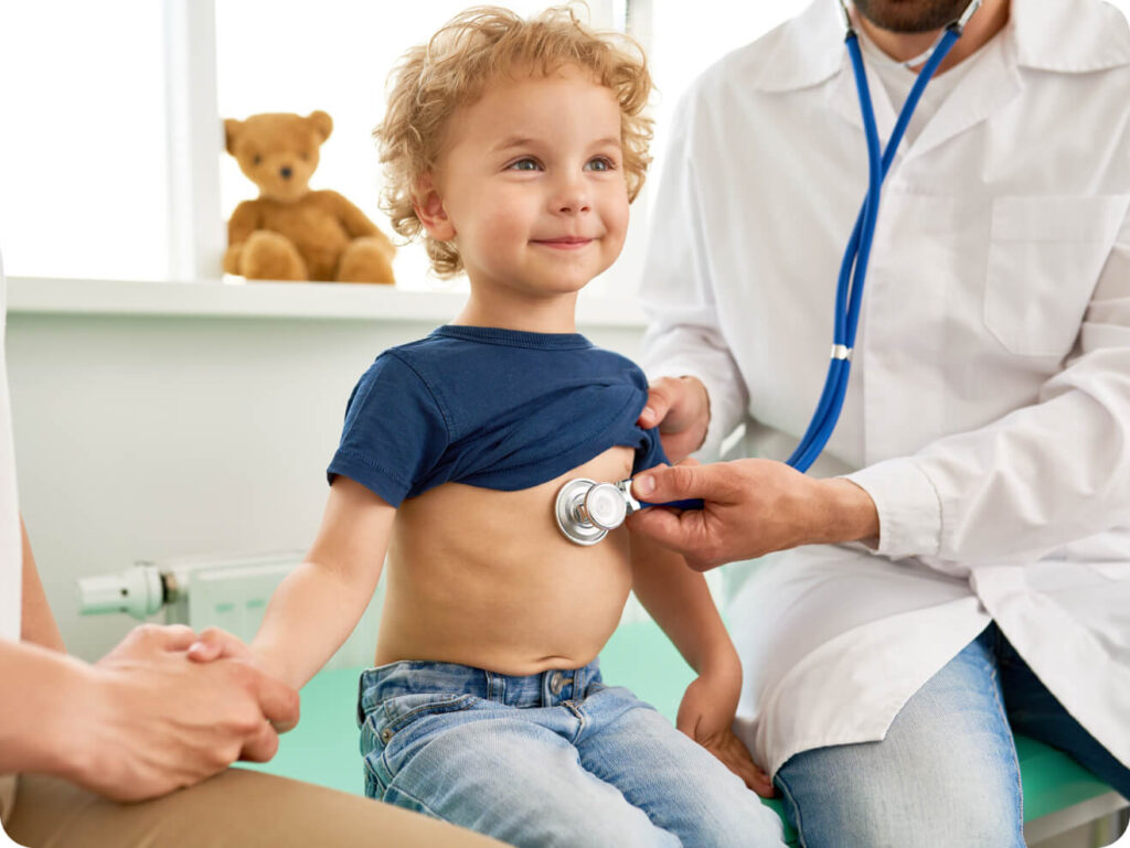 Lekarz przeprowadzi szczegółowe badanie fizykalne, dostosowane do wieku dziecka i zgłaszanych dolegliwości. W zależności od potrzeb oceni ogólny stan, zbada gardło, uszy, węzły chłonne, klatkę piersiową, brzuch, skórę oraz podstawowe funkcje neurologiczne, aby postawić trafną diagnozę.